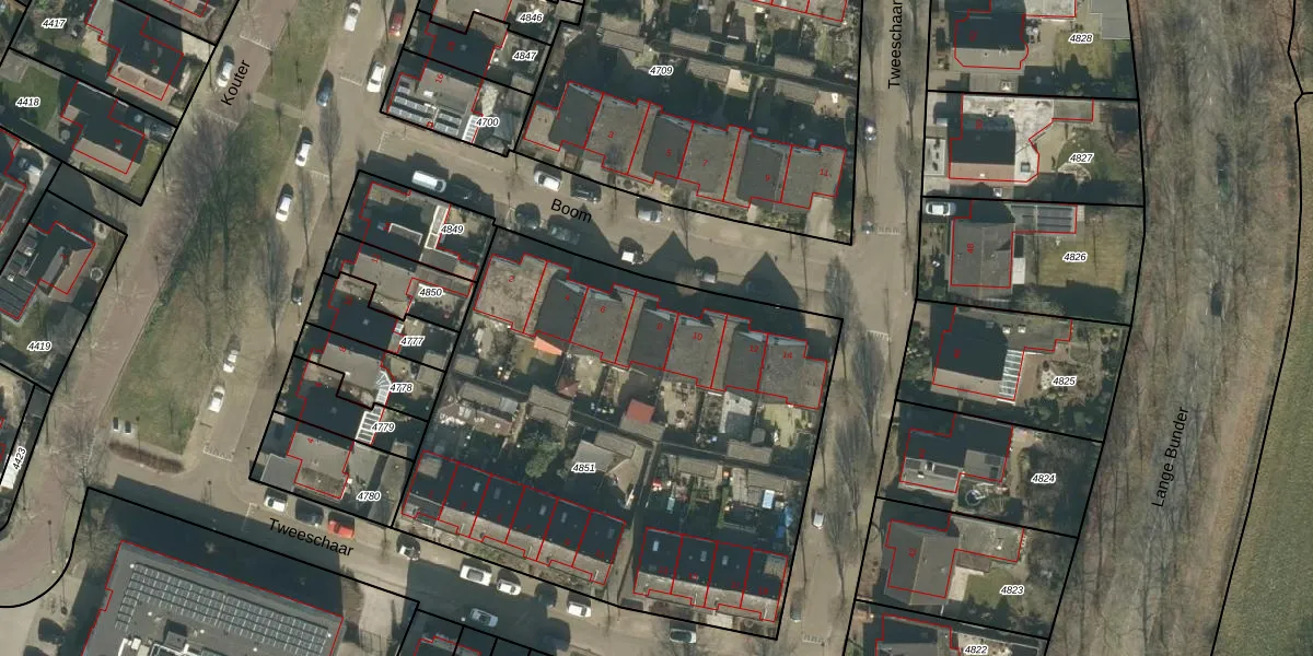 Het perceel waarop Boom 8 staat heeft een oppervlakte van 2850 m². Dit is een zeer groot perceel. De perceeloppervlakte wordt geregistreerd door het Kadaster. Gedetailleerde informatie over de maten van dit perceel kunt u vinden in het rapport Kadastrale kaart met maatvoering van Boom 8.