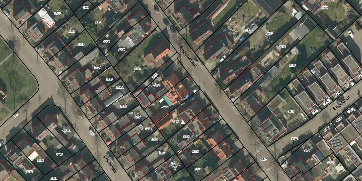 Brigidastraat 32 is gelegen op kadastraal perceel GNK01K5070. Deze kadastrale aanduiding is uniek en wordt gebruikt door het Kadaster om eigendomsrechten en andere zakelijke rechten vast te leggen. Het perceel maakt onderdeel uit van de kadastrale gemeente Nieuw-Ginneken.