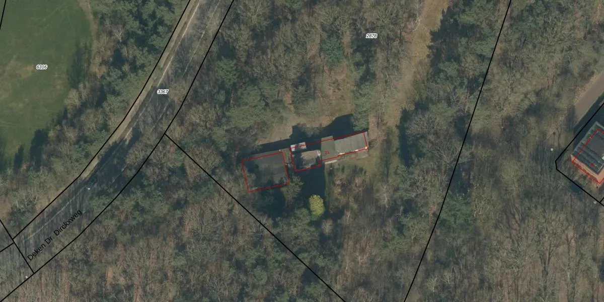 Deken Dr. Dirckxweg 21 is gelegen op kadastraal perceel GNK01K2878. Deze kadastrale aanduiding is uniek en wordt gebruikt door het Kadaster om eigendomsrechten en andere zakelijke rechten vast te leggen. Het perceel maakt onderdeel uit van de kadastrale gemeente Nieuw-Ginneken.