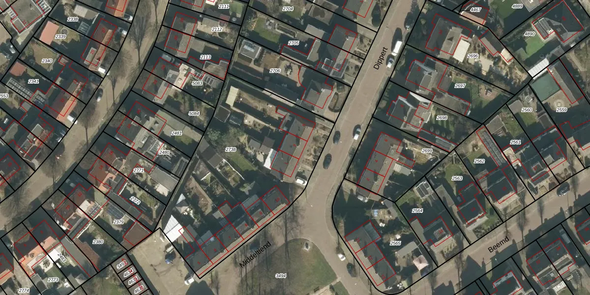 Het perceel waarop Dippert 3 staat heeft een oppervlakte van 2185 m². Dit is een zeer groot perceel. De perceeloppervlakte wordt geregistreerd door het Kadaster. Gedetailleerde informatie over de maten van dit perceel kunt u vinden in het rapport Kadastrale kaart met maatvoering van Dippert 3.