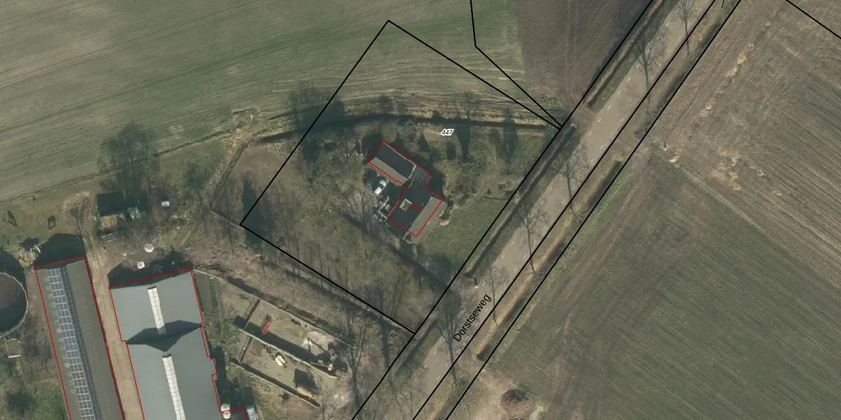 Het perceel waarop Dorstseweg 41-A staat heeft een oppervlakte van 2970 m². Dit is een zeer groot perceel. De perceeloppervlakte wordt geregistreerd door het Kadaster. Gedetailleerde informatie over de maten van dit perceel kunt u vinden in het rapport Kadastrale kaart met maatvoering van Dorstseweg 41-A.