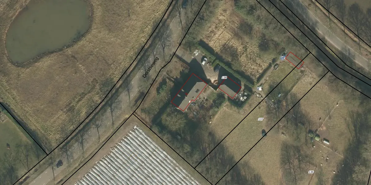 Het perceel waarop Dorstseweg 50 staat heeft een oppervlakte van 4900 m². Dit is een zeer groot perceel. De perceeloppervlakte wordt geregistreerd door het Kadaster. Gedetailleerde informatie over de maten van dit perceel kunt u vinden in het rapport Kadastrale kaart met maatvoering van Dorstseweg 50.