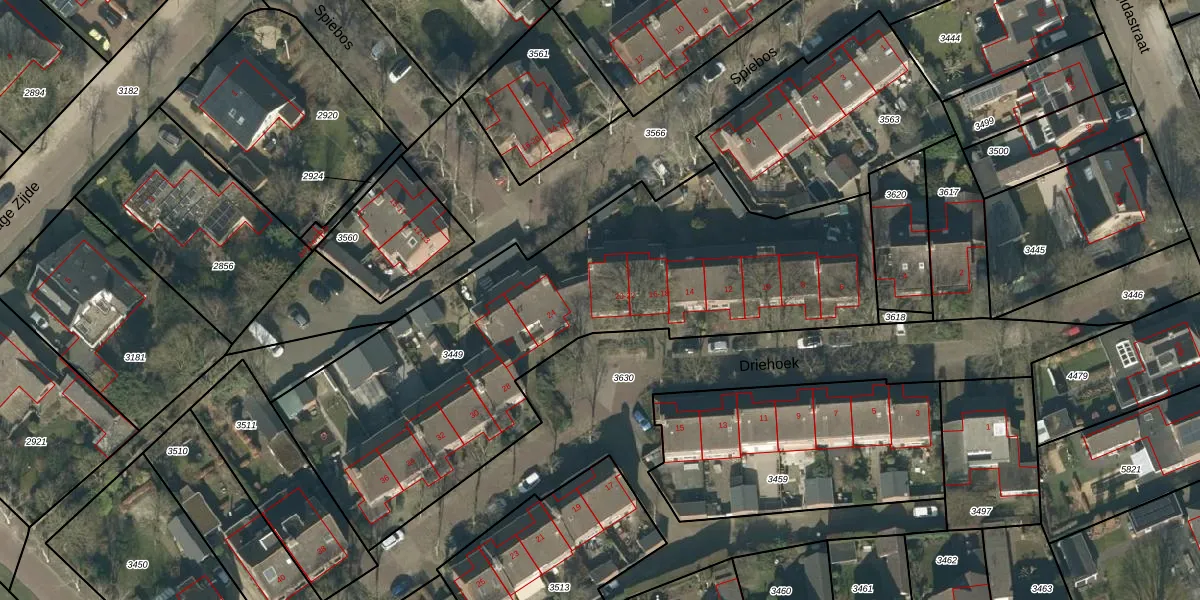 Het perceel waarop Driehoek 22 staat heeft een oppervlakte van 2435 m². Dit is een zeer groot perceel. De perceeloppervlakte wordt geregistreerd door het Kadaster. Gedetailleerde informatie over de maten van dit perceel kunt u vinden in het rapport Kadastrale kaart met maatvoering van Driehoek 22.