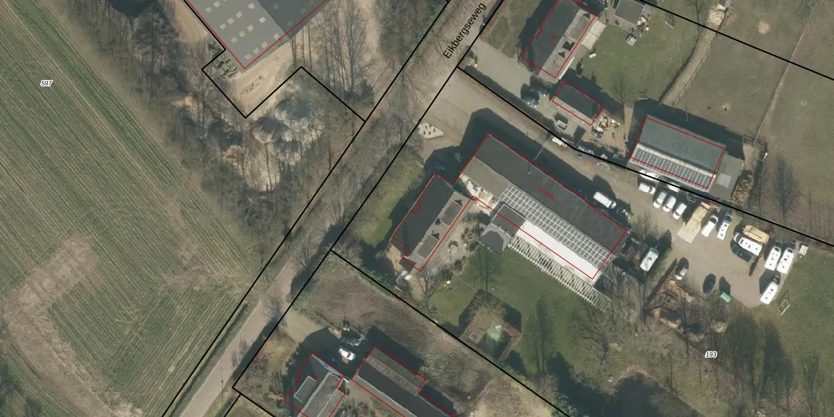 Het perceel waarop Eikbergseweg 10 staat heeft een oppervlakte van 9420 m². Dit is een zeer groot perceel. De perceeloppervlakte wordt geregistreerd door het Kadaster. Gedetailleerde informatie over de maten van dit perceel kunt u vinden in het rapport Kadastrale kaart met maatvoering van Eikbergseweg 10.