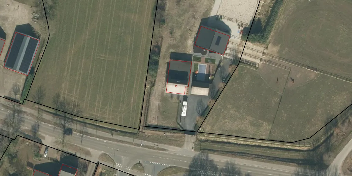Het perceel waarop Gilzeweg 15 staat heeft een oppervlakte van 1,5 ha. Dit is een zeer groot perceel. De perceeloppervlakte wordt geregistreerd door het Kadaster. Gedetailleerde informatie over de maten van dit perceel kunt u vinden in het rapport Kadastrale kaart met maatvoering van Gilzeweg 15.
