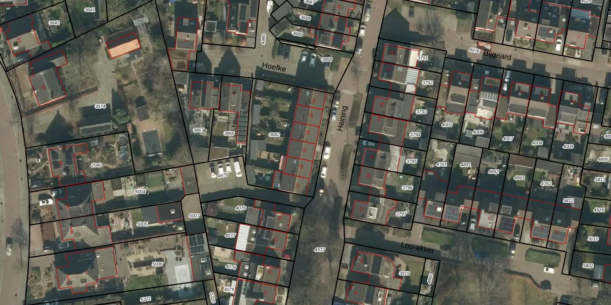 Het perceel waarop Heining 21 staat heeft een oppervlakte van 874 m². Dit is een groot perceel. De perceeloppervlakte wordt geregistreerd door het Kadaster. Gedetailleerde informatie over de maten van dit perceel kunt u vinden in het rapport Kadastrale kaart met maatvoering van Heining 21.