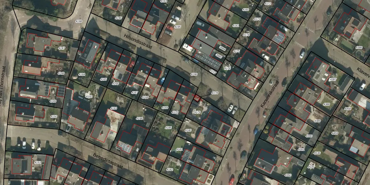 Hilsondisstraat 14 is gelegen op kadastraal perceel GNK01K4170. Deze kadastrale aanduiding is uniek en wordt gebruikt door het Kadaster om eigendomsrechten en andere zakelijke rechten vast te leggen. Het perceel maakt onderdeel uit van de kadastrale gemeente Nieuw-Ginneken.