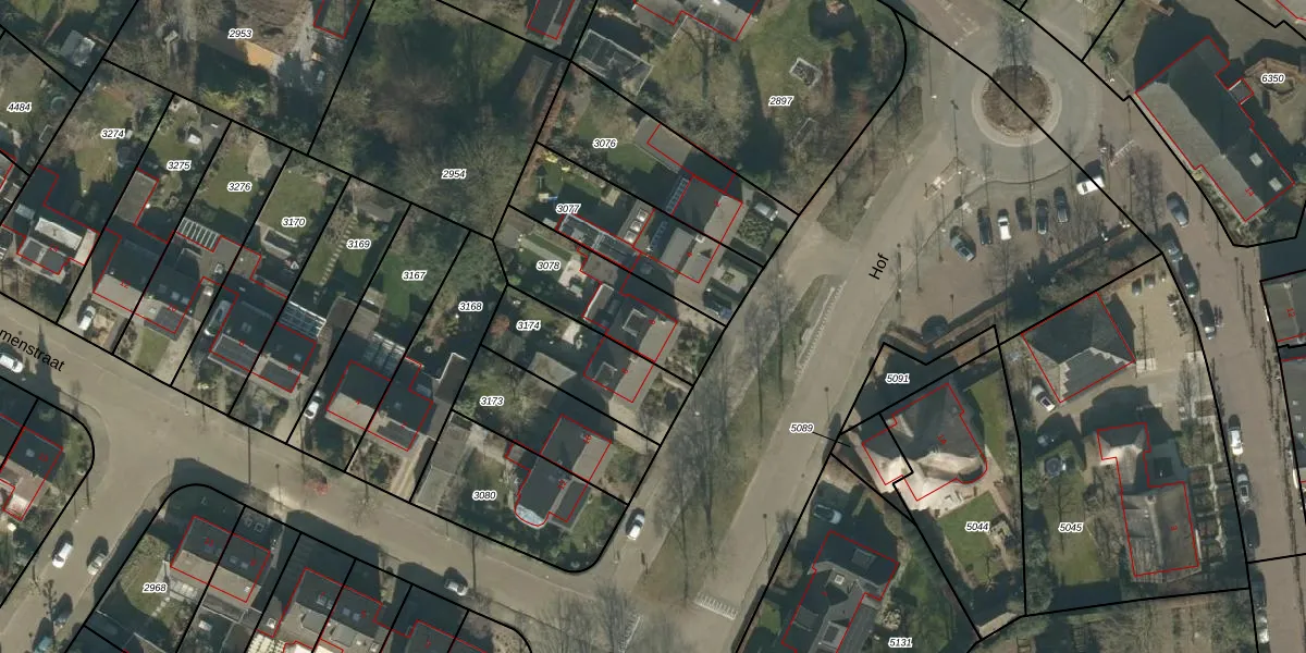 Het perceel waarop Hof 6 staat heeft een oppervlakte van 383 m². Dit is een groot perceel. De perceeloppervlakte wordt geregistreerd door het Kadaster. Gedetailleerde informatie over de maten van dit perceel kunt u vinden in het rapport Kadastrale kaart met maatvoering van Hof 6.