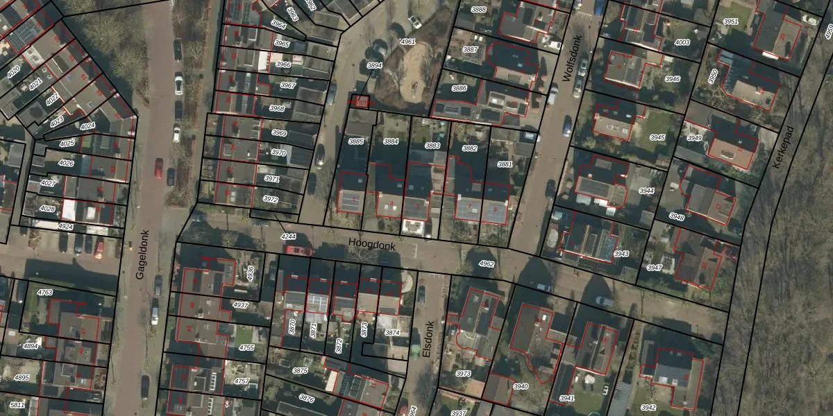 Gebruik de zoekbalk of klik op een perceel voor informatie over de adressen binnen dit perceel.