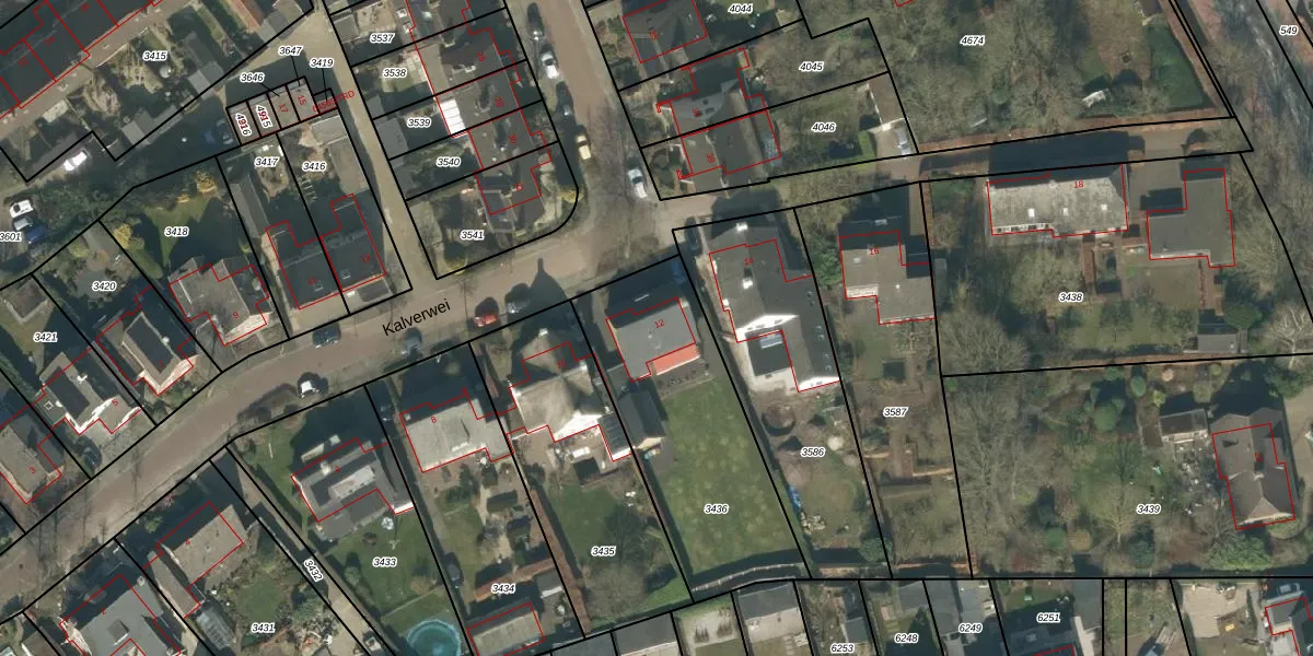 Kalverwei 12 is gelegen op kadastraal perceel GNK01K3436. Deze kadastrale aanduiding is uniek en wordt gebruikt door het Kadaster om eigendomsrechten en andere zakelijke rechten vast te leggen. Het perceel maakt onderdeel uit van de kadastrale gemeente Nieuw-Ginneken.