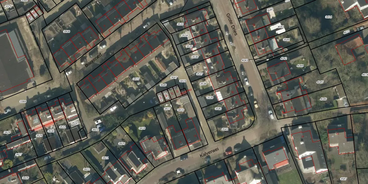 Kalverwei 64565-TRD is gelegen op kadastraal perceel GNK01K3419. Deze kadastrale aanduiding is uniek en wordt gebruikt door het Kadaster om eigendomsrechten en andere zakelijke rechten vast te leggen. Het perceel maakt onderdeel uit van de kadastrale gemeente Nieuw-Ginneken.