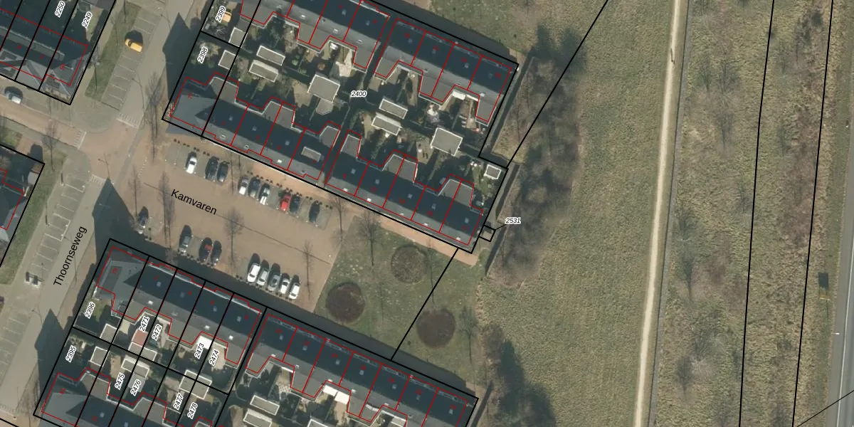 Kamvaren 15 is gelegen op kadastraal perceel GNK01C2400. Deze kadastrale aanduiding is uniek en wordt gebruikt door het Kadaster om eigendomsrechten en andere zakelijke rechten vast te leggen. Het perceel maakt onderdeel uit van de kadastrale gemeente Nieuw-Ginneken.