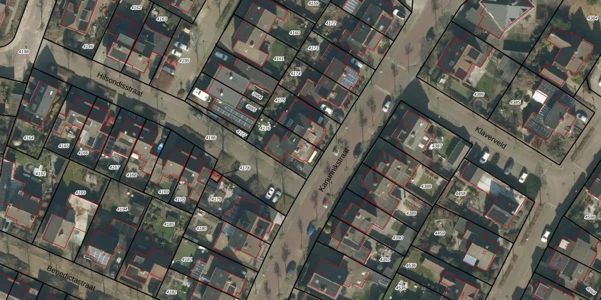 Kanunnikstraat 13 is gelegen op kadastraal perceel GNK01K4176. Deze kadastrale aanduiding is uniek en wordt gebruikt door het Kadaster om eigendomsrechten en andere zakelijke rechten vast te leggen. Het perceel maakt onderdeel uit van de kadastrale gemeente Nieuw-Ginneken.