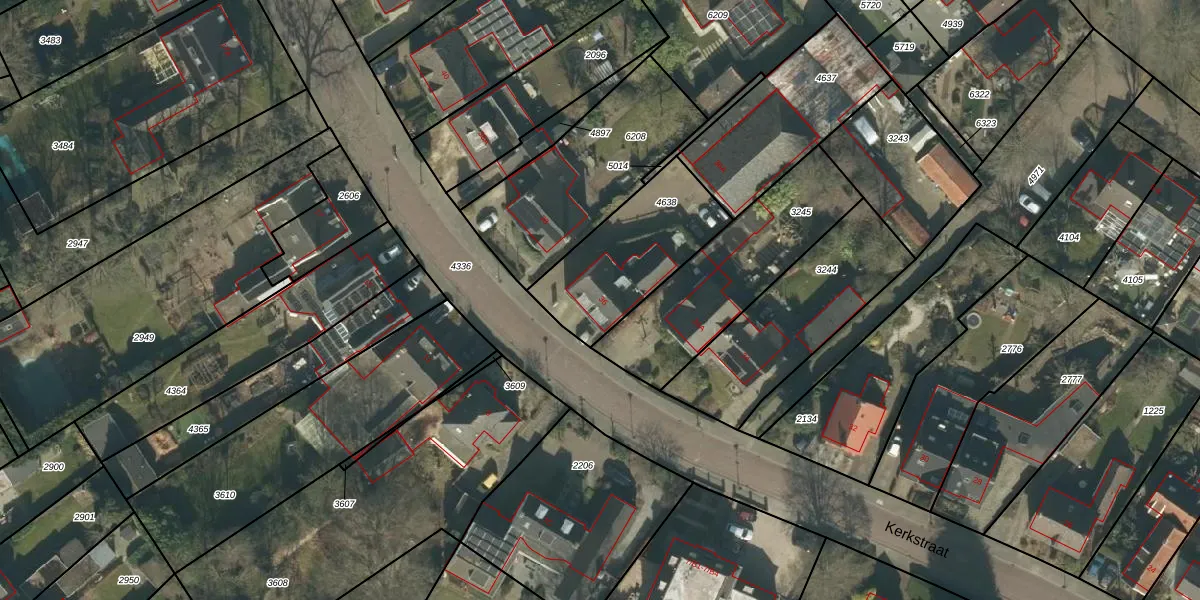 Het perceel waarop Kerkstraat 36 staat heeft een oppervlakte van 485 m². Dit is een groot perceel. De perceeloppervlakte wordt geregistreerd door het Kadaster. Gedetailleerde informatie over de maten van dit perceel kunt u vinden in het rapport Kadastrale kaart met maatvoering van Kerkstraat 36.
