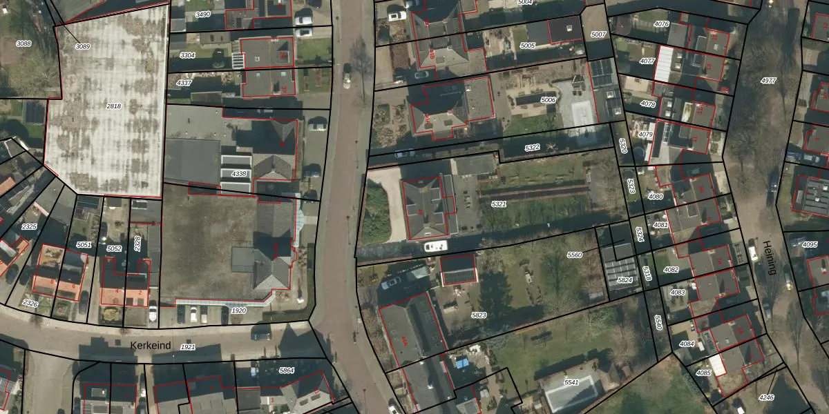 Het perceel waarop Kerkstraat 46 staat heeft een oppervlakte van 1350 m². Dit is een zeer groot perceel. De perceeloppervlakte wordt geregistreerd door het Kadaster. Gedetailleerde informatie over de maten van dit perceel kunt u vinden in het rapport Kadastrale kaart met maatvoering van Kerkstraat 46.