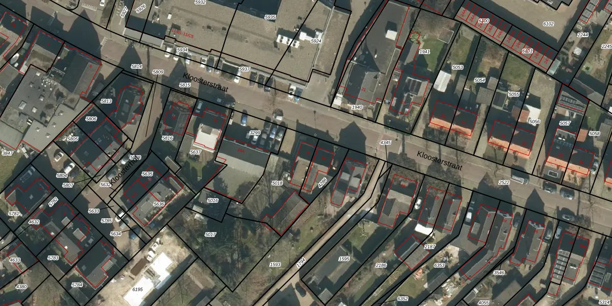 Het perceel waarop Kloosterstraat 16 staat heeft een oppervlakte van 495 m². Dit is een groot perceel. De perceeloppervlakte wordt geregistreerd door het Kadaster. Gedetailleerde informatie over de maten van dit perceel kunt u vinden in het rapport Kadastrale kaart met maatvoering van Kloosterstraat 16.