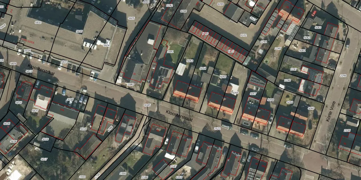 Het perceel waarop Kloosterstraat 25 staat heeft een oppervlakte van 374 m². Dit is een groot perceel. De perceeloppervlakte wordt geregistreerd door het Kadaster. Gedetailleerde informatie over de maten van dit perceel kunt u vinden in het rapport Kadastrale kaart met maatvoering van Kloosterstraat 25.
