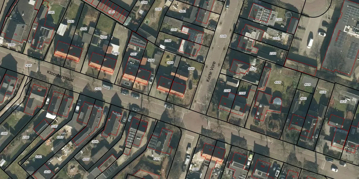 Korte Vore 1 is gelegen op kadastraal perceel GNK01K5060. Deze kadastrale aanduiding is uniek en wordt gebruikt door het Kadaster om eigendomsrechten en andere zakelijke rechten vast te leggen. Het perceel maakt onderdeel uit van de kadastrale gemeente Nieuw-Ginneken.