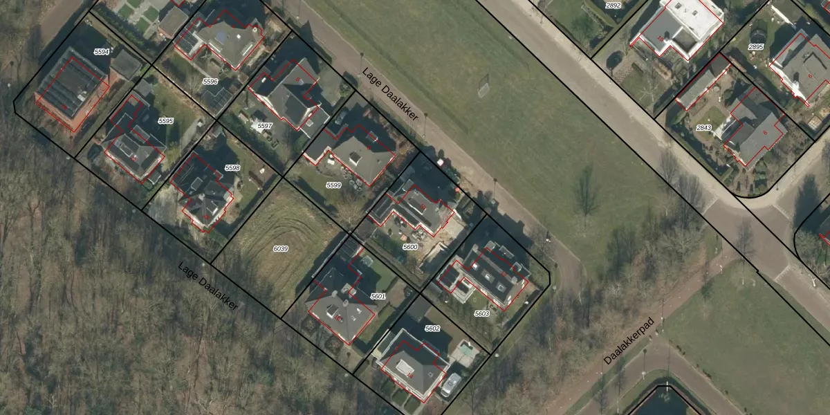 Lage Daalakker 10 is gelegen op kadastraal perceel GNK01K5600. Deze kadastrale aanduiding is uniek en wordt gebruikt door het Kadaster om eigendomsrechten en andere zakelijke rechten vast te leggen. Het perceel maakt onderdeel uit van de kadastrale gemeente Nieuw-Ginneken.