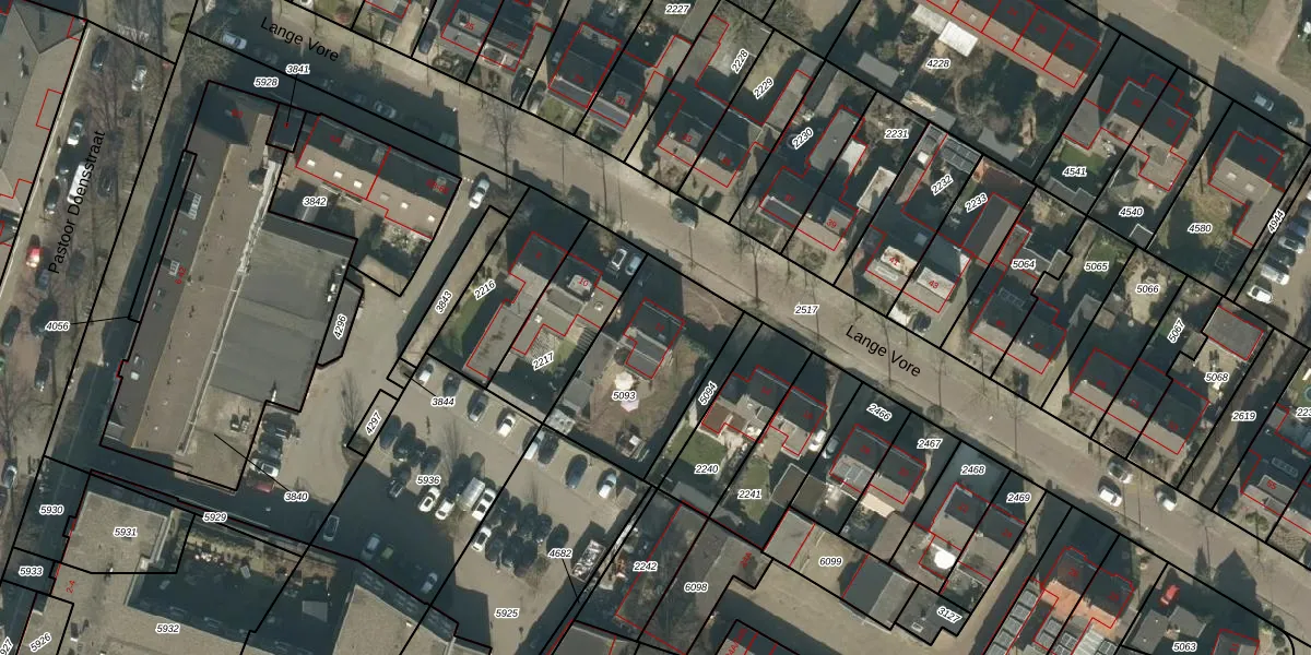 Het perceel waarop Lange Vore 12 staat heeft een oppervlakte van 536 m². Dit is een groot perceel. De perceeloppervlakte wordt geregistreerd door het Kadaster. Gedetailleerde informatie over de maten van dit perceel kunt u vinden in het rapport Kadastrale kaart met maatvoering van Lange Vore 12.