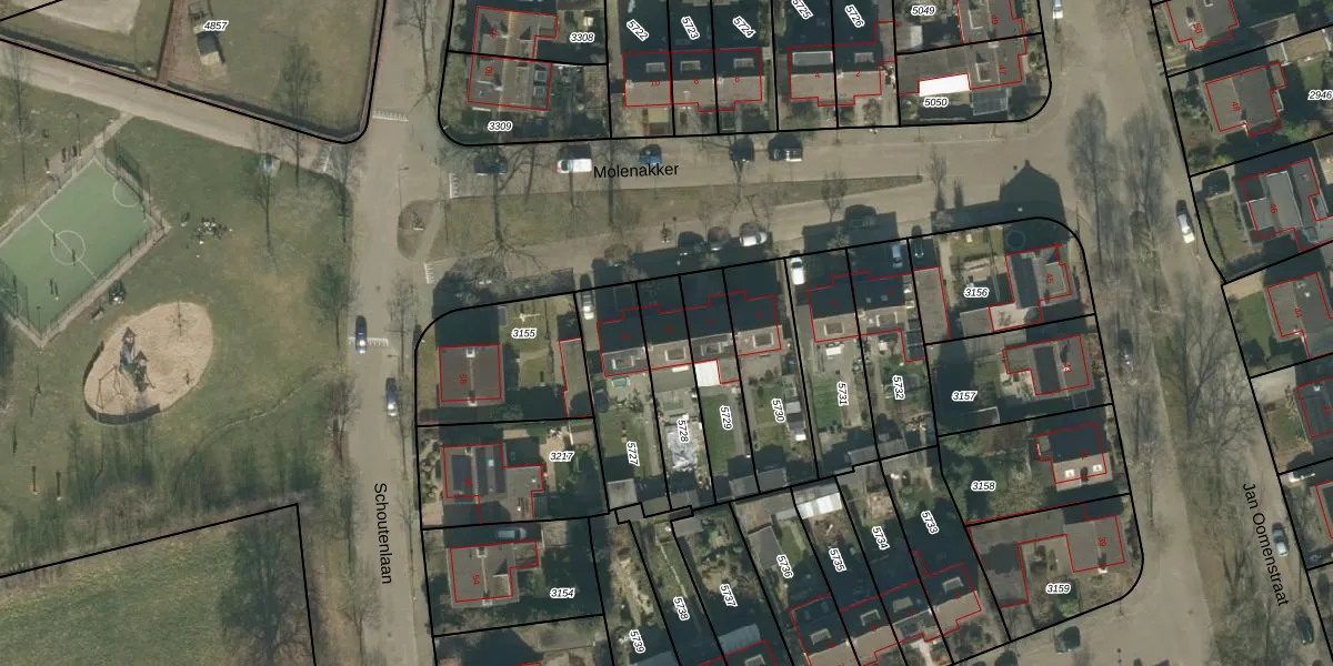 Het perceel waarop Molenakker 9 staat heeft een oppervlakte van 234 m². Dit is een middelgroot perceel. De perceeloppervlakte wordt geregistreerd door het Kadaster. Gedetailleerde informatie over de maten van dit perceel kunt u vinden in het rapport Kadastrale kaart met maatvoering van Molenakker 9.