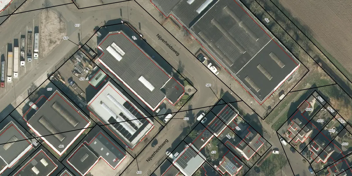 Nijverheidsweg 9 is gelegen op kadastraal perceel GNK01M427. Deze kadastrale aanduiding is uniek en wordt gebruikt door het Kadaster om eigendomsrechten en andere zakelijke rechten vast te leggen. Het perceel maakt onderdeel uit van de kadastrale gemeente Nieuw-Ginneken.