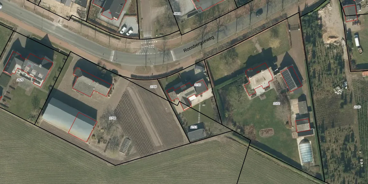 Roosbergseweg 7 is gelegen op kadastraal perceel GNK01C2710. Deze kadastrale aanduiding is uniek en wordt gebruikt door het Kadaster om eigendomsrechten en andere zakelijke rechten vast te leggen. Het perceel maakt onderdeel uit van de kadastrale gemeente Nieuw-Ginneken.