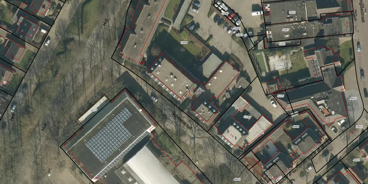 Het perceel waarop Schoolstraat 12 staat heeft een oppervlakte van 4310 m². Dit is een zeer groot perceel. De perceeloppervlakte wordt geregistreerd door het Kadaster. Gedetailleerde informatie over de maten van dit perceel kunt u vinden in het rapport Kadastrale kaart met maatvoering van Schoolstraat 12.