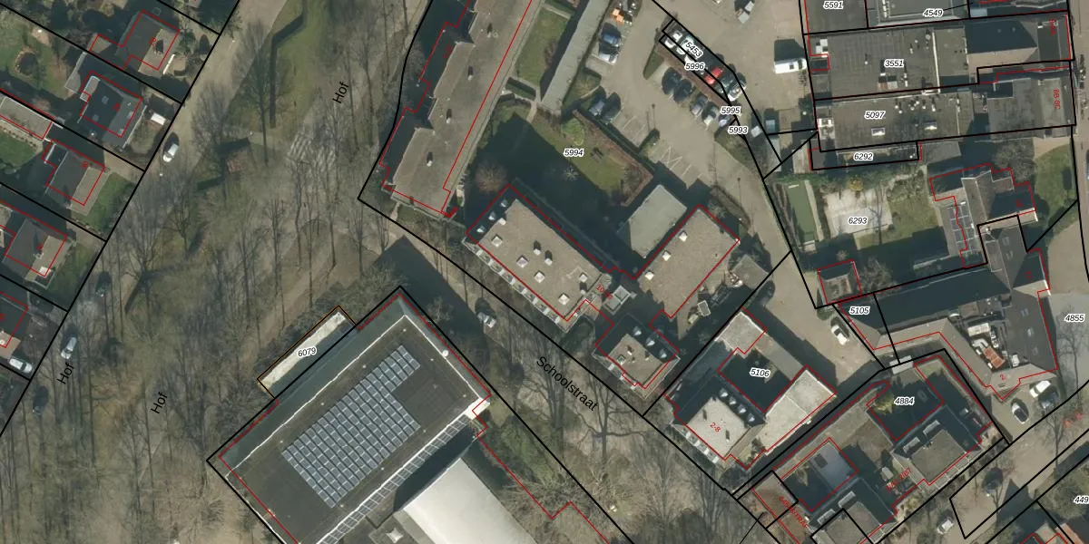 Het perceel waarop Schoolstraat 18 staat heeft een oppervlakte van 4310 m². Dit is een zeer groot perceel. De perceeloppervlakte wordt geregistreerd door het Kadaster. Gedetailleerde informatie over de maten van dit perceel kunt u vinden in het rapport Kadastrale kaart met maatvoering van Schoolstraat 18.
