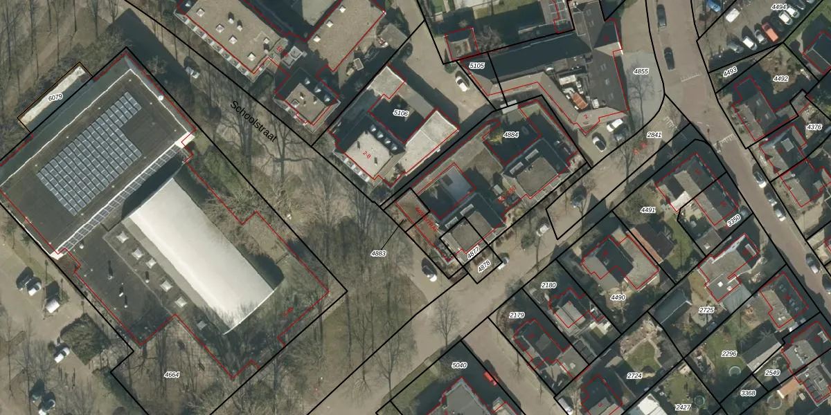 Schoolstraat 64546-TRAF is gelegen op kadastraal perceel GNK01K4883. Deze kadastrale aanduiding is uniek en wordt gebruikt door het Kadaster om eigendomsrechten en andere zakelijke rechten vast te leggen. Het perceel maakt onderdeel uit van de kadastrale gemeente Nieuw-Ginneken.