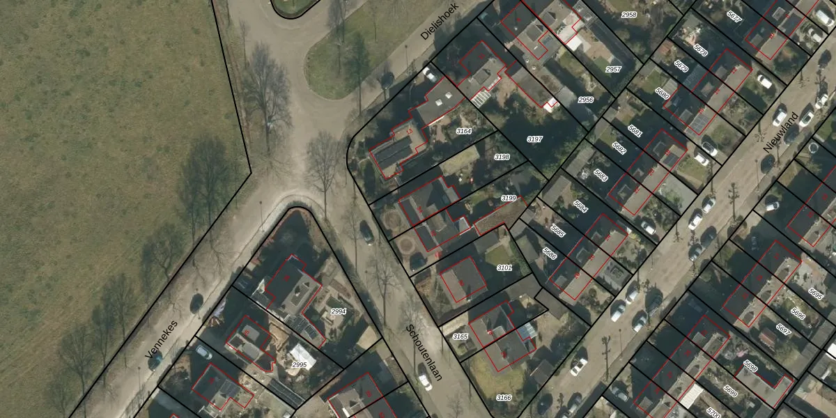 Schoutenlaan 34 is gelegen op kadastraal perceel GNK01K3198. Deze kadastrale aanduiding is uniek en wordt gebruikt door het Kadaster om eigendomsrechten en andere zakelijke rechten vast te leggen. Het perceel maakt onderdeel uit van de kadastrale gemeente Nieuw-Ginneken.