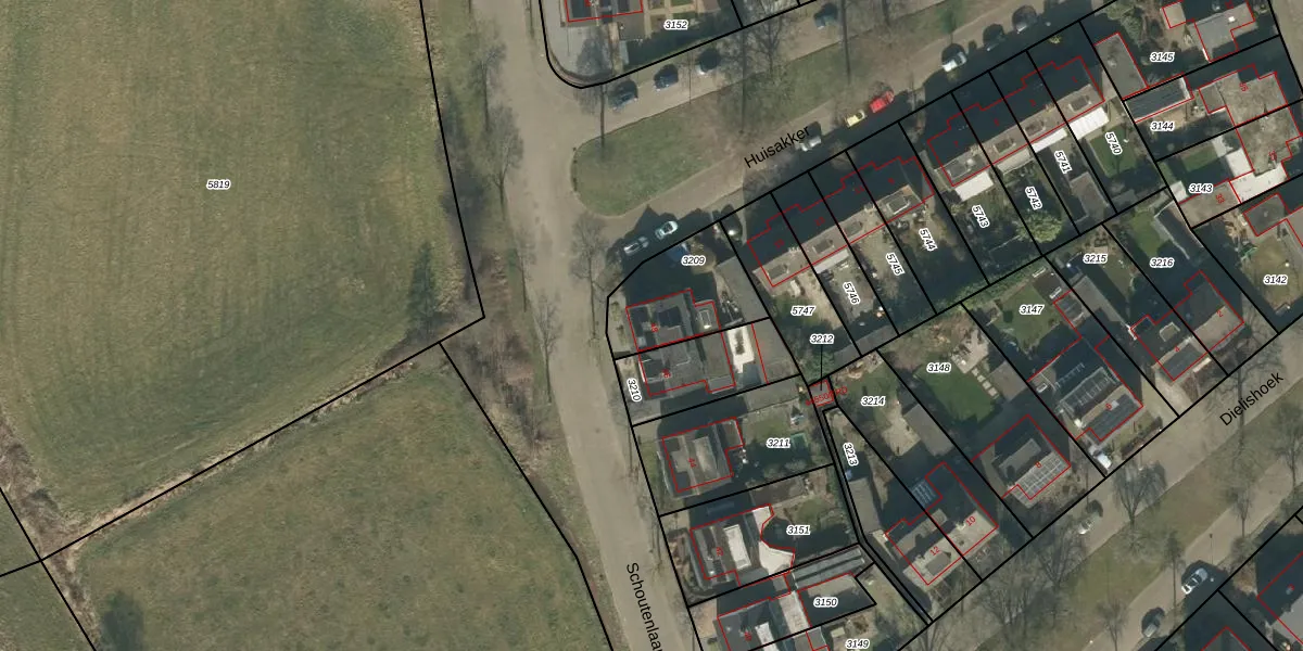 Schoutenlaan 48 is gelegen op kadastraal perceel GNK01K3209. Deze kadastrale aanduiding is uniek en wordt gebruikt door het Kadaster om eigendomsrechten en andere zakelijke rechten vast te leggen. Het perceel maakt onderdeel uit van de kadastrale gemeente Nieuw-Ginneken.