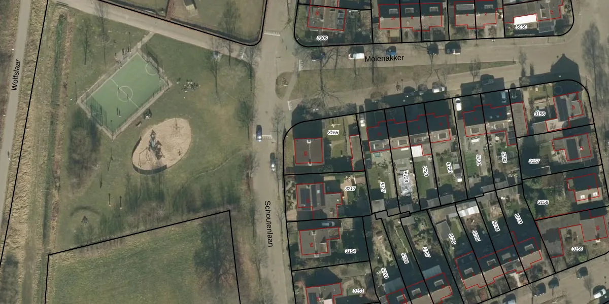 Het perceel waarop Schoutenlaan 58 staat heeft een oppervlakte van 440 m². Dit is een groot perceel. De perceeloppervlakte wordt geregistreerd door het Kadaster. Gedetailleerde informatie over de maten van dit perceel kunt u vinden in het rapport Kadastrale kaart met maatvoering van Schoutenlaan 58.