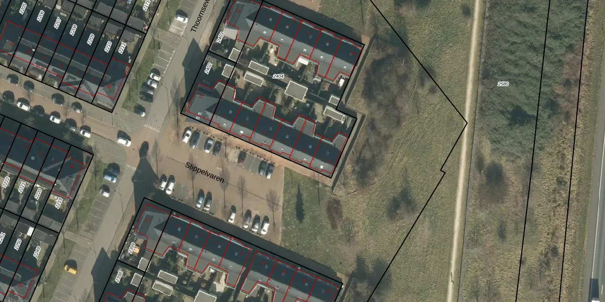 Stippelvaren 9 is gelegen op kadastraal perceel GNK01C2404. Deze kadastrale aanduiding is uniek en wordt gebruikt door het Kadaster om eigendomsrechten en andere zakelijke rechten vast te leggen. Het perceel maakt onderdeel uit van de kadastrale gemeente Nieuw-Ginneken.