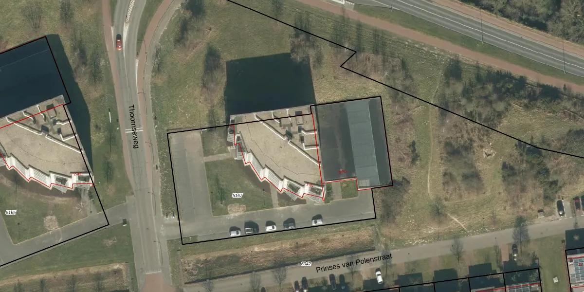 Het perceel waarop Thoornseweg 35 staat heeft een oppervlakte van 2834 m². Dit is een zeer groot perceel. De perceeloppervlakte wordt geregistreerd door het Kadaster. Gedetailleerde informatie over de maten van dit perceel kunt u vinden in het rapport Kadastrale kaart met maatvoering van Thoornseweg 35.