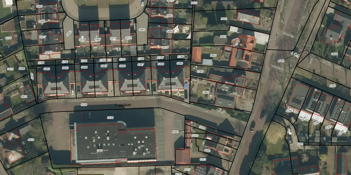 Het perceel waarop Tolakker 2 staat heeft een oppervlakte van 263 m². Dit is een middelgroot perceel. De perceeloppervlakte wordt geregistreerd door het Kadaster. Gedetailleerde informatie over de maten van dit perceel kunt u vinden in het rapport Kadastrale kaart met maatvoering van Tolakker 2.