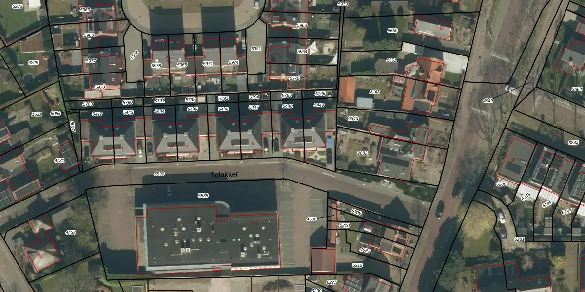 Tolakker 4 is gelegen op kadastraal perceel GNK01K5448. Deze kadastrale aanduiding is uniek en wordt gebruikt door het Kadaster om eigendomsrechten en andere zakelijke rechten vast te leggen. Het perceel maakt onderdeel uit van de kadastrale gemeente Nieuw-Ginneken.