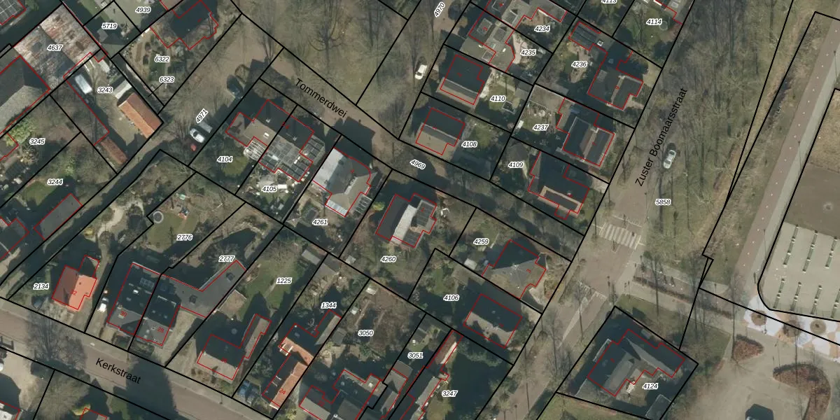 Tommerdwei 1 is gelegen op kadastraal perceel GNK01K4260. Deze kadastrale aanduiding is uniek en wordt gebruikt door het Kadaster om eigendomsrechten en andere zakelijke rechten vast te leggen. Het perceel maakt onderdeel uit van de kadastrale gemeente Nieuw-Ginneken.