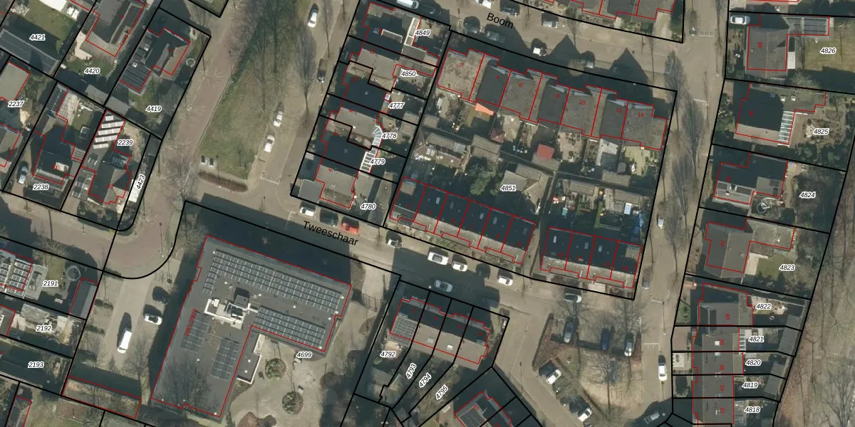 Tweeschaar 3 is gelegen op kadastraal perceel GNK01K4851. Deze kadastrale aanduiding is uniek en wordt gebruikt door het Kadaster om eigendomsrechten en andere zakelijke rechten vast te leggen. Het perceel maakt onderdeel uit van de kadastrale gemeente Nieuw-Ginneken.