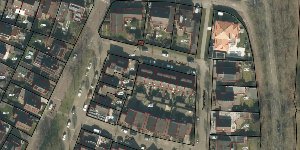 Tweeschaar 31 is gelegen op kadastraal perceel GNK01K4709. Deze kadastrale aanduiding is uniek en wordt gebruikt door het Kadaster om eigendomsrechten en andere zakelijke rechten vast te leggen. Het perceel maakt onderdeel uit van de kadastrale gemeente Nieuw-Ginneken.