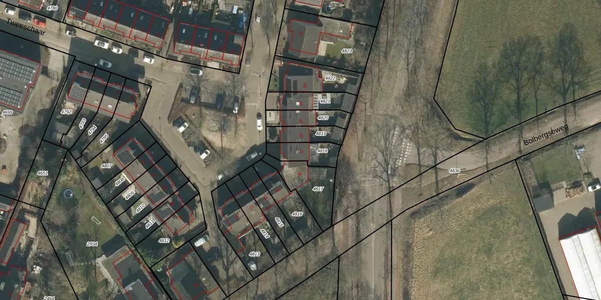 Tweeschaar 32 is gelegen op kadastraal perceel GNK01K4818. Deze kadastrale aanduiding is uniek en wordt gebruikt door het Kadaster om eigendomsrechten en andere zakelijke rechten vast te leggen. Het perceel maakt onderdeel uit van de kadastrale gemeente Nieuw-Ginneken.