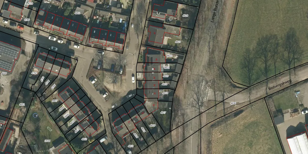 Tweeschaar 36 is gelegen op kadastraal perceel GNK01K4820. Deze kadastrale aanduiding is uniek en wordt gebruikt door het Kadaster om eigendomsrechten en andere zakelijke rechten vast te leggen. Het perceel maakt onderdeel uit van de kadastrale gemeente Nieuw-Ginneken.