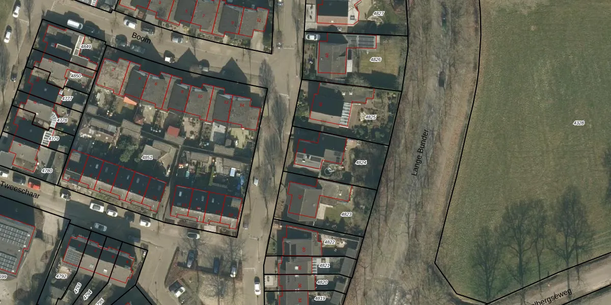 Tweeschaar 44 is gelegen op kadastraal perceel GNK01K4824. Deze kadastrale aanduiding is uniek en wordt gebruikt door het Kadaster om eigendomsrechten en andere zakelijke rechten vast te leggen. Het perceel maakt onderdeel uit van de kadastrale gemeente Nieuw-Ginneken.