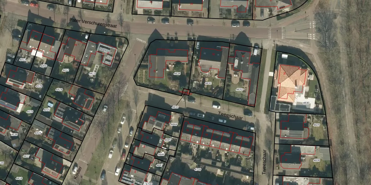 Tweeschaar 64590-TRAF is gelegen op kadastraal perceel GNK01K4833. Deze kadastrale aanduiding is uniek en wordt gebruikt door het Kadaster om eigendomsrechten en andere zakelijke rechten vast te leggen. Het perceel maakt onderdeel uit van de kadastrale gemeente Nieuw-Ginneken.