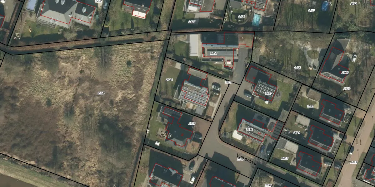 Valkenlaar 16 is gelegen op kadastraal perceel GNK01C2634. Deze kadastrale aanduiding is uniek en wordt gebruikt door het Kadaster om eigendomsrechten en andere zakelijke rechten vast te leggen. Het perceel maakt onderdeel uit van de kadastrale gemeente Nieuw-Ginneken.
