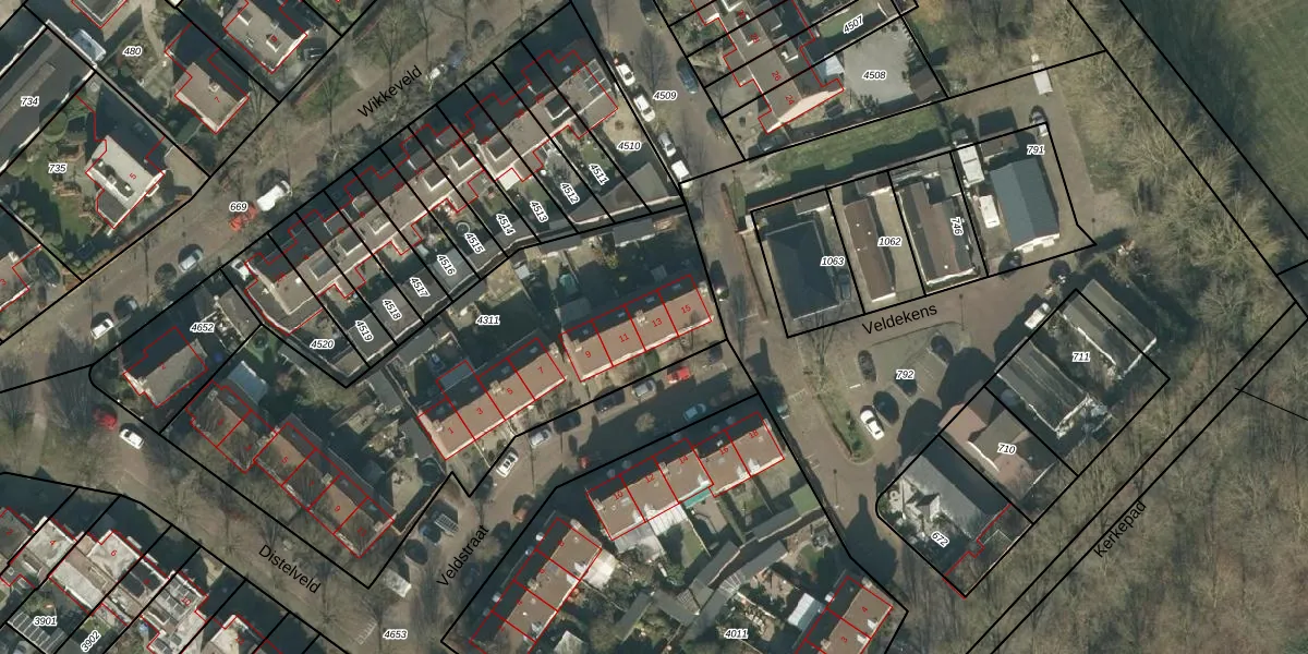 Veldstraat 13 is gelegen op kadastraal perceel GNK01K4311. Deze kadastrale aanduiding is uniek en wordt gebruikt door het Kadaster om eigendomsrechten en andere zakelijke rechten vast te leggen. Het perceel maakt onderdeel uit van de kadastrale gemeente Nieuw-Ginneken.