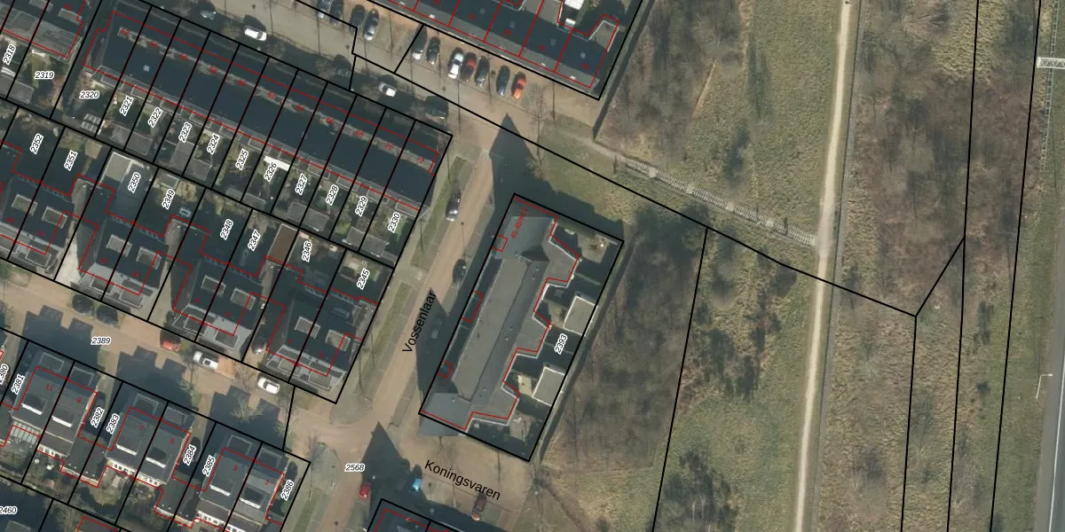 Het perceel waarop Vossenlaar 45-K2 staat heeft een oppervlakte van 1010 m². Dit is een zeer groot perceel. De perceeloppervlakte wordt geregistreerd door het Kadaster. Gedetailleerde informatie over de maten van dit perceel kunt u vinden in het rapport Kadastrale kaart met maatvoering van Vossenlaar 45-K2.