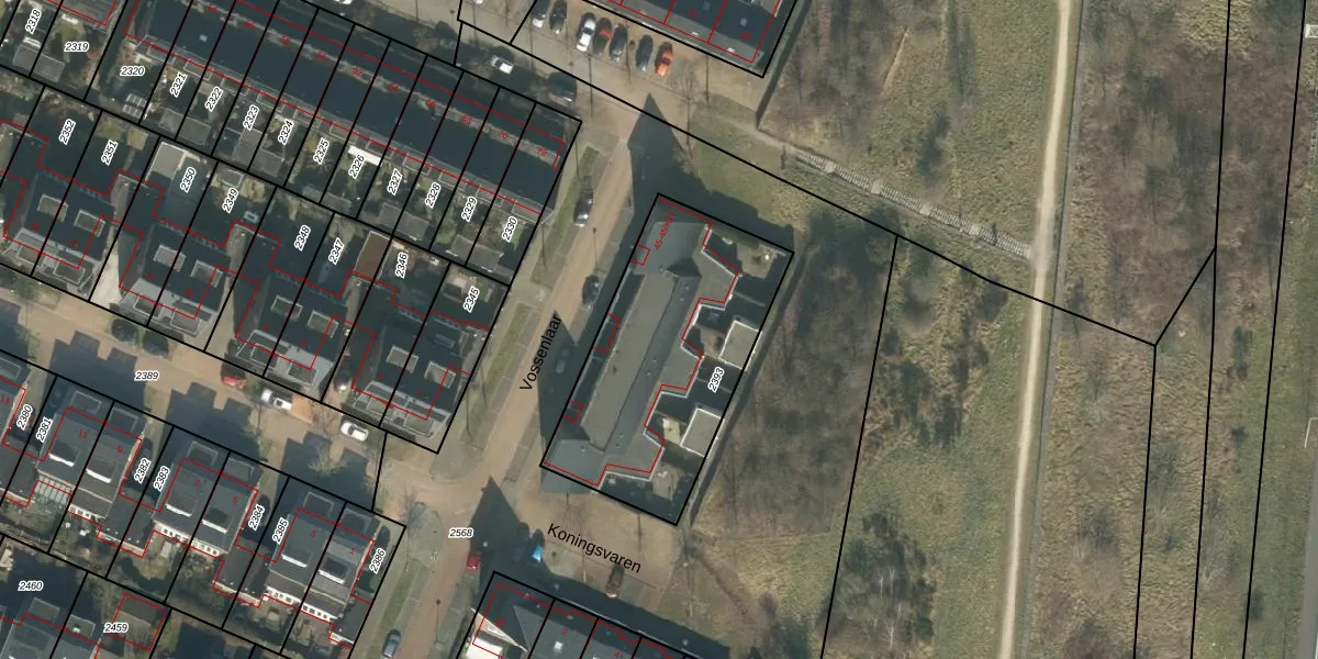 Het perceel waarop Vossenlaar 45-K3 staat heeft een oppervlakte van 1010 m². Dit is een zeer groot perceel. De perceeloppervlakte wordt geregistreerd door het Kadaster. Gedetailleerde informatie over de maten van dit perceel kunt u vinden in het rapport Kadastrale kaart met maatvoering van Vossenlaar 45-K3.