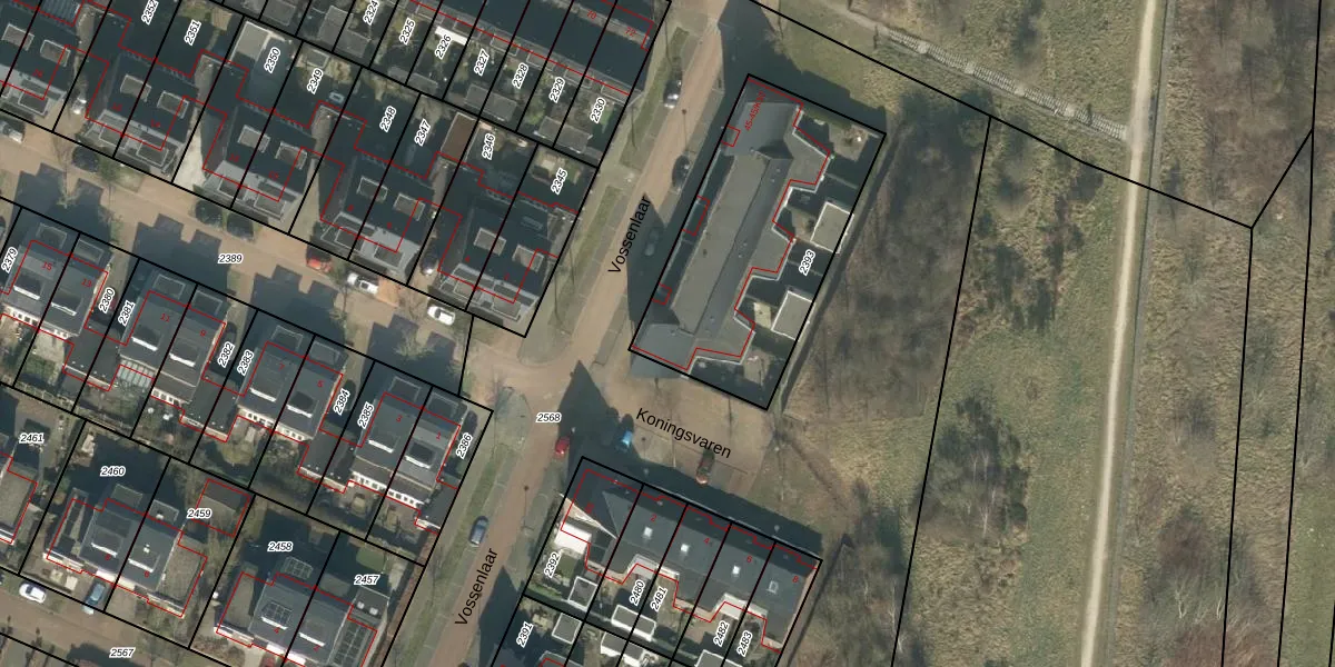 Het perceel waarop Vossenlaar 45-K6 staat heeft een oppervlakte van 1010 m². Dit is een zeer groot perceel. De perceeloppervlakte wordt geregistreerd door het Kadaster. Gedetailleerde informatie over de maten van dit perceel kunt u vinden in het rapport Kadastrale kaart met maatvoering van Vossenlaar 45-K6.