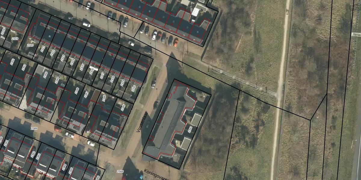Het perceel waarop Vossenlaar 45-K8 staat heeft een oppervlakte van 1010 m². Dit is een zeer groot perceel. De perceeloppervlakte wordt geregistreerd door het Kadaster. Gedetailleerde informatie over de maten van dit perceel kunt u vinden in het rapport Kadastrale kaart met maatvoering van Vossenlaar 45-K8.